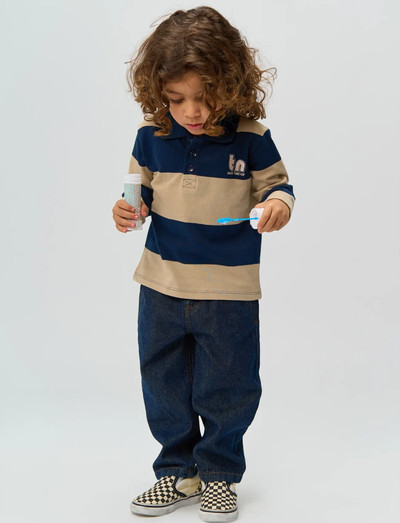 This long-sleeved polo shirt from THE NEW Siblings combines sporty style with classic comfort. It features wide horizontal stripes and a traditional collar with button closure, creating a preppy and timeless look. Made from a soft cotton blend, it's comfortable to wear perfect for both everyday wear and more dressed-up occasions.- Classic polo collar with buttons - Wide horizontal stripes - Soft and comfortable quality - Embroidered logo on the chest - Versatile and stylish for both casual and dressy wear- GOTS Organic, certified by Control Union, 842535.