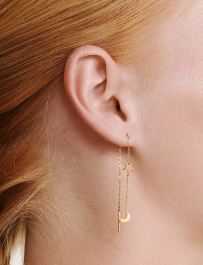 Diese Ohrringe mit ihren herabhängenden Ketten verleihen einen modernen, ausgefallenen Look. Sie sind aus wasserabweisendem, anlaufgeschütztem Edelstahl gefertigt und mit himmlischen Anhängern versehen.