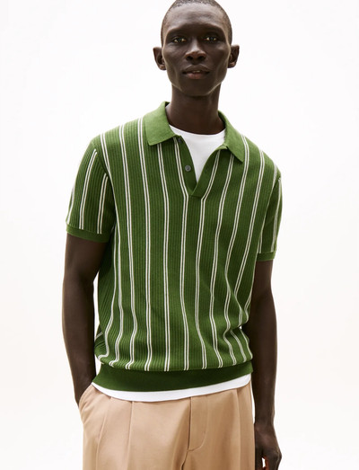 Werten Sie Ihre Freizeitgarderobe mit diesem Strickpolohemd mit vertikalem Streifendesign auf. Die kurzen Ärmel und der klassische Polokragen sorgen für einen zeitlosen Look, während die Strickstruktur einen Hauch von Eleganz verleiht.