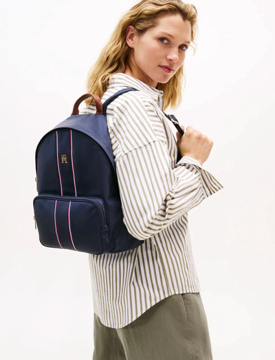 Dieser Rucksack mit seinem stromlinienförmigen Design bietet eine praktische und stilvolle Möglichkeit, Ihre wichtigsten Dinge zu transportieren. Er verfügt über eine Vordertasche für einfachen Zugriff auf kleinere Gegenstände und verstellbare Träger für einen bequemen Sitz. Das charakteristische Streifendetail sorgt für einen Hauch von Markenerkennung.