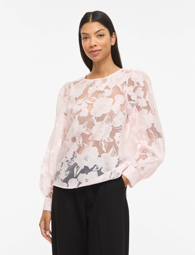 Feminines Styling zeichnet diese langärmlige Bluse aus. Der Jacquard-Stoff bietet ein strukturiertes Gefühl und ist knitterarm, wodurch sie sich ideal für den Alltag eignet. Sie verfügt über Knopfmanschetten und einen Knopfverschluss.