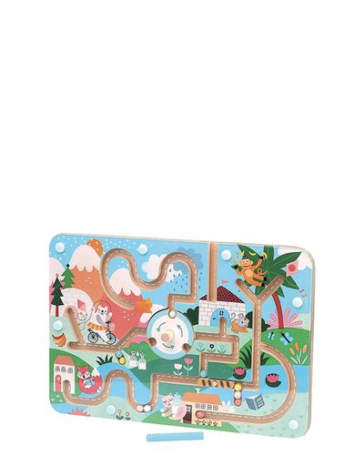 Using a small magnetic stylus pen, children can travel through this whimsical landscape by following the corridors of the maze and solving obstacles along the way.