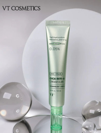 Cleanse your face thoroughly and pat dry. Apply a small amount of VT Cica Reti-A Cream 0.05 evenly onto your face and neck. Gently massage until fully absorbed. Use in the evening, starting 2–3 times per week, gradually increasing to daily use as tolerated. Always apply sunscreen during the day.