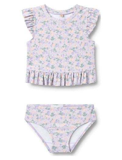 Two-piece bathing set designed for comfort and fun for children. - Top: Frills at shoulders and bottom - Extended length swim top- Bottom: Plain fit for great comfort- Signature printSwimwear ensures a snug fit and allows for unrestricted movement during water activities. It is perfect for a day at the beach or swimming pool. All our swimwear is predominantly made in recycled polyester and is comfortable for your child to wear and move in.The style is with UV 40+/UPF 40+ protection. ---- 83% Recycled polyester, 17% Elastane- GRS certified