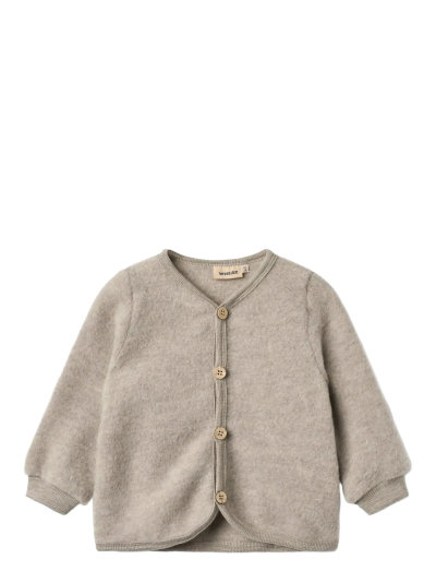 Long-sleeved wool cardigan in felted merino wool for your baby. - Regular fit- Buttons down the front- Rib cuffs- Soft edge band at the neckline and bottom hem Wheats wool wear is specially designed to keep your child warm in the cold weather, while still keeping them from overheating, as wool has the unique quality that it helps regulate body temperature. The wool styles are great for layering and soft on bare skin.Wheats cardigans have a classic look with buttons down the front. The soft cardigan is comfortable to wear and a great addition to your child's autumn and winter wardrobe. It can be styled on its own as a light jacket with a T-shirt underneath and gives the outfit a cute look. It is also perfect as an extra layer underneath a jacket. ---- Standard 100 by OEKO-TEX®- 100% Merino wool