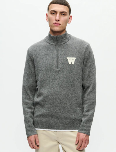Dieser Strickpullover verfügt über einen halben Reißverschluss und einen Stehkragen, was eine Mischung aus Komfort und Stil bietet. Das langärmlige Design mit normaler Passform macht ihn zu einer vielseitigen Ergänzung für jede Garderobe.