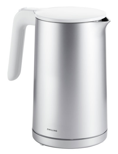 A design piece for daily use: a premium silver kettle in modern ZWILLING design with heat insulation. The plastic dual wall body also keeps heat inside the 1850w kettle longer while keeping the outside cool to the touch. Moreover, the lid opens to a maximum of 70 degrees to prevent direct contact with hot steam. The seamless, 1.5 l stainless steel container is also extremely easy to clean and the built-in limescale filter – also partially made with stainless steel – ensures better flavour. The snug-fit filter also seals the spout when the lid is closed, thereby keeping spillage to an absolute minimum even when the kettle is accidentally knocked.