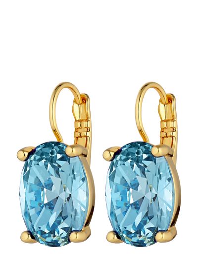 These French hook earrings feature an oval, faceted crystal set in polished brass. The design offers a classic yet eye-catching accent, finished with a shiny, plated tone. A DANISH DESIGN, crafted without cadmium, nickel, or lead.