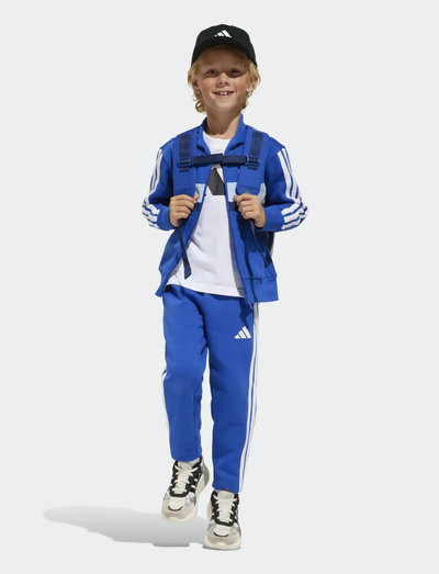 Dieser Trainingsanzug ist perfekt für aktive Kinder und bietet ein angenehmes Tragegefühl bei jeder Aktivität. Er ist aus einem weichen Fleece-Gemisch gefertigt, das für Komfort sorgt, egal ob sie spielen oder sich entspannen. Rippdetails und ein verstellbarer Kordelzug in der Taille sorgen für eine gute Passform, während auffälliges Colourblocking und klassische 3-Streifen einen sportlichen Touch verleihen. Dieses Produkt wird aus mindestens 70 % recycelten und erneuerbaren Materialien hergestellt.