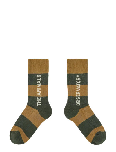 Diese dicken, bequemen Socken verleihen jedem Outfit einen Retro-Touch. Das Design zeichnet sich durch markante Streifen und den Markennamen aus, der vertikal an der Seite verläuft.