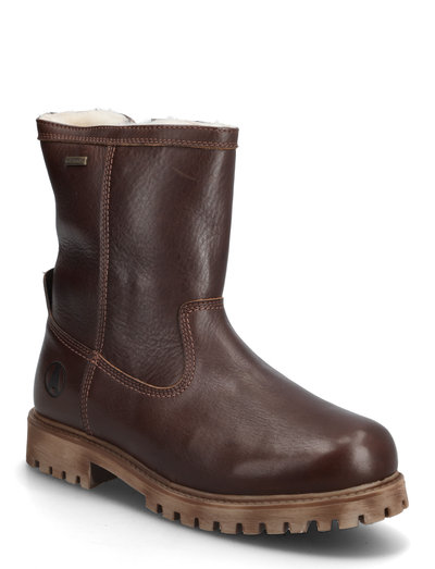 Classic boot made in a quality leather with a membrane that makes it waterproof. Lined in genuine sheepskin lining. Perfect for all slushy, cold and rainy days. The outsole is made of TPR, for those icy days.