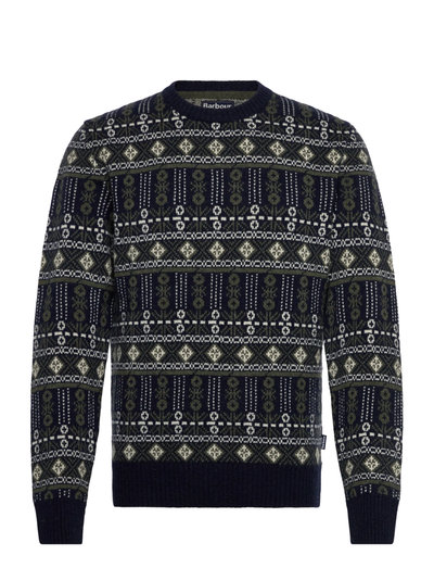 Dieser Pullover mit Rundhalsausschnitt ist mit einem farbenfrohen Fair-Isle-Muster aus superweicher Wolle gestrickt. Kontrastfarbene Rippstrickbündchen an Kragen, Saum und Ärmeln vervollständigen dieses markante Kleidungsstück, zusammen mit einem charakteristischen Flaggenetikett an der Seitennaht.