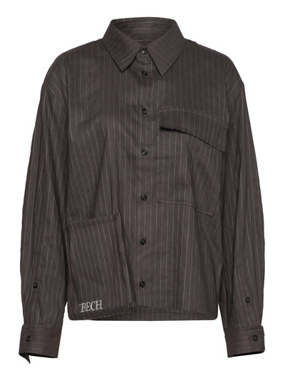 The shirt also has a chest pocket and a side pocket, offering a 2-in-1 function with both a horizontal and diagonal opening. This pocket has raw edges and is embroidered with the logo.