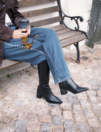 Setzen Sie ein Statement mit diesen hohen Stiefeln, die mit einer eleganten Silhouette entworfen wurden. Der durchgehende Reissverschluss sorgt für einfaches Anziehen, während der Blockabsatz einen Hauch von Höhe verleiht.