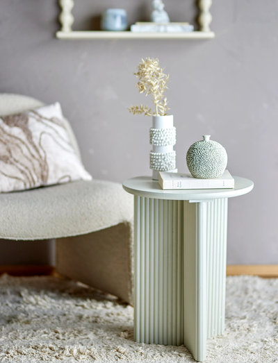 The Edith Side Table by Bloomingville has a modern design in white lacquered pine with grooved details on the base. The round table is ideal as a coffee table, bedside table or decorative corner table.