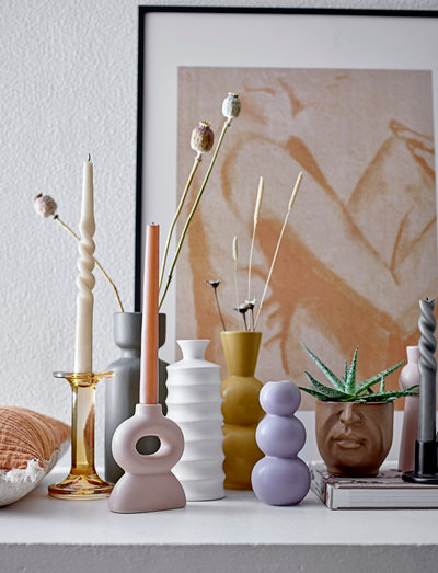 The Jamey Candlestick by Bloomingville presents an original silhouette with a cylindrical base for the candle. The amazing and elegant candlestick is made of heavy brown glass and is practical and beautiful at the same time. Use it together with the large Jamey Candlestick or other candlesticks for a beautiful and feminine look.