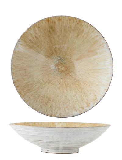 SpülmaschinenfestThe Saskia Bowl by Bloomingville is made of stoneware with a beautiful reactive glaze in golden shades. The large Bowl is ideal for serving fruit, small dishes or as a decorative centerpiece on the table. Variations in color and surface may occur due to the natural nature of the glaze.