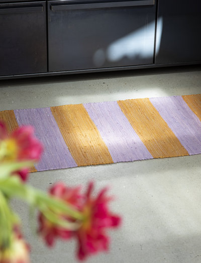 The chindi rug is a colourful nowaste design that creates a unique and homely feeling thanks to its handmade quality. derived from the hindi term, chindi, meaning 'leftovers', this rug is handwoven from recycled cotton tshirts and clothing scraps. each individual thread thereby gives new life to discarded clothes by transforming them into a decorative rug. the chindi rug has a soft, textured look and a striped design in complementary colours with matching tassels. available in five versatile sizes, 45x60, 60x90, 60x120 60x200 and 140x200 cm . to suit any room. place the rug wherever your heart desires – at the front door to warmly welcome guests, in the cosy setting of a summer house or in the lively atmosphere of a children's room. the chindi rug effortlessly accentuates any room with its beautiful colours and classical stripes.