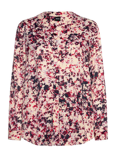 Diese Bluse mit langen Ärmeln zeichnet sich durch einen dezenten V-Ausschnitt aus, der eine entspannte und doch raffinierte Silhouette bietet. Der Allover-Print sorgt für einen Hauch von optischem Interesse und macht sie zu einem vielseitigen Kleidungsstück für legere und schickere Anlässe.