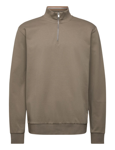 Dieses elegante Sweatshirt mit Viertelreissverschluss bietet vielseitige Styling-Optionen. Der Stehkragen verleiht ihm einen Hauch von Raffinesse und macht ihn sowohl für legere als auch für halbformelle Anlässe geeignet. Gerippte Bündchen und ein gerippter Saum sorgen für eine bequeme Passform.