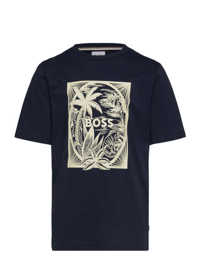 Dieses BOSS Children T-Shirt verfügt über einen stilvollen tropischen Print mit einer Palme und dem BOSS-Logo. Es ist eine gute Wahl für den Alltag.