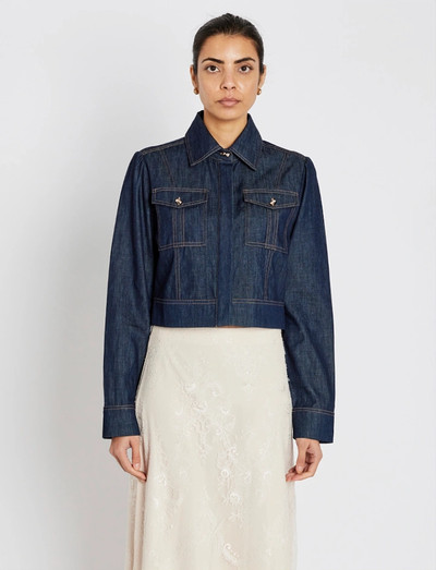 Mit ihrer strukturierten Silhouette bietet diese Jeansjacke eine moderne Interpretation eines klassischen Stils. Sie verfügt über einen Kragen, eine Knopfleiste und Brusttaschen, was sie zu einer vielseitigen Ergänzung für jede Garderobe macht.