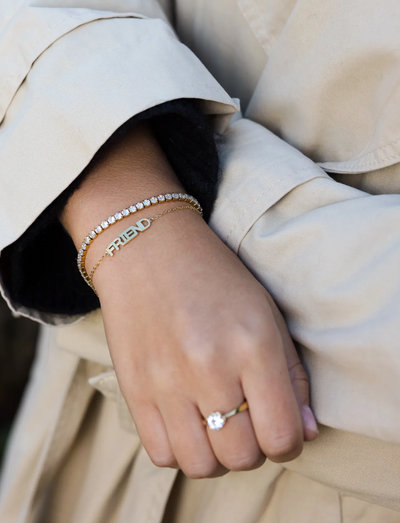Eine zarte Kette macht dieses Armband zu einem dezenten und dennoch bedeutungsvollen Schmuckstück. Es wurde entworfen, um allein oder in Kombination mit anderem Schmuck getragen zu werden, was es zu einer vielseitigen Ergänzung für jede Sammlung macht. Das perfekte Geschenk, um Freundschaft zu feiern.