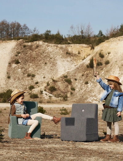 By KlipKlap KK Kids Chair XL - Dusty green bouclé w. light green - Stühle & Hocker