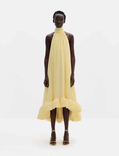 Dieses Midikleid zeichnet sich durch ein Halterneck-Design und einen gerafften Saum aus. Es ist perfekt für jeden Anlass. Das Kleid hat eine fließende Silhouette. Ein vielseitiges Kleidungsstück für Ihre Garderobe.