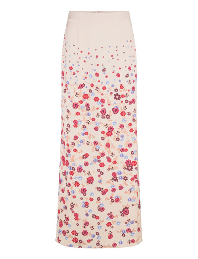 Dieser lange Rock ist aus glattem Satin gefertigt und hat einen durchgehenden Blumendruck. Der Rock ist in Maxilänge geschnitten und hat einen Reissverschluss auf der Rückseite. Das Material besteht aus 100 % recyceltem Polyester.