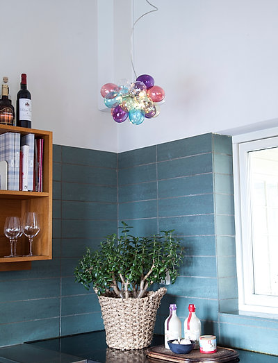 The gross family has a new member in the form of this multi-coloured glass. gross is a hanging ceiling lamp with an incredibly unique and fun feel to its exciting colourway. the ceiling lamp consists of 19 glasses. the ceiling lamp’s height is 20 cm. using wires in the chrome canopy the height of the lamp can easily be adjusted as desired.