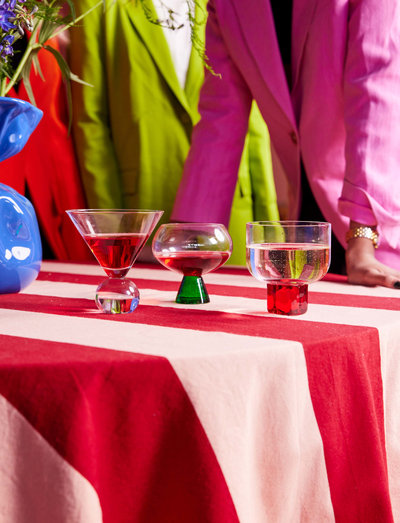Straight shapes meet the round, and coloured glass meet the clear. Glass Spice is beautiful and cocky, playful and lovely to hold. A must-have glass which stands out and melts in at the same time. Serve beverages or desserts in them – they will be loved no matter what. Available in black, red, yellow, green, blue and clear. We love them mixed together. 2-pack delivered in a nice box.