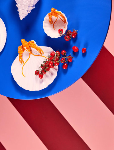 Lobsti serving plate is inspired by the sea but in a more animalistic way. Here the crayfish come alive and add humor and playfulness to the table setting. It’s a must-have plate at the crayfish party but also an odd piece which creates dynamic on the table, and something special to chat about during dinner. Plate Lobsti flirts with several senses and we bet that everyone will want to touch it. The plate is white while the crayfish stands out in a spicy orange. Made of dolomite.