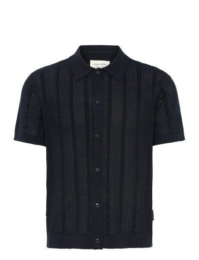 Dieses kurzärmelige Poloshirt mit strukturierter Strickware und Knopfleiste bietet einen raffinierten und dennoch entspannten Look. Das dezente, vertikale Muster sorgt für optisches Interesse und macht es zu einem vielseitigen Kleidungsstück für schick-legere Anlässe.