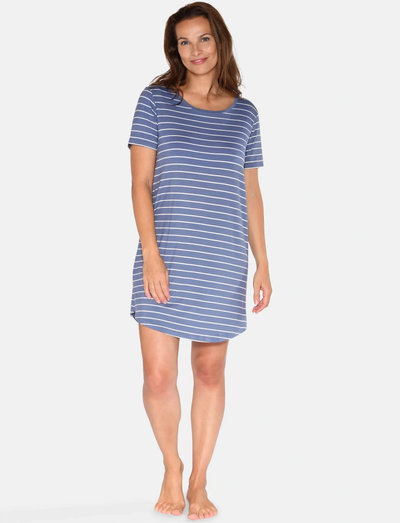 Dieses Nachthemd bietet eine entspannte Passform, kurze Ärmel und einen klassischen Rundhalsausschnitt. Das horizontale Streifenmuster verleiht diesem bequemen Stück eine zeitlose Note.