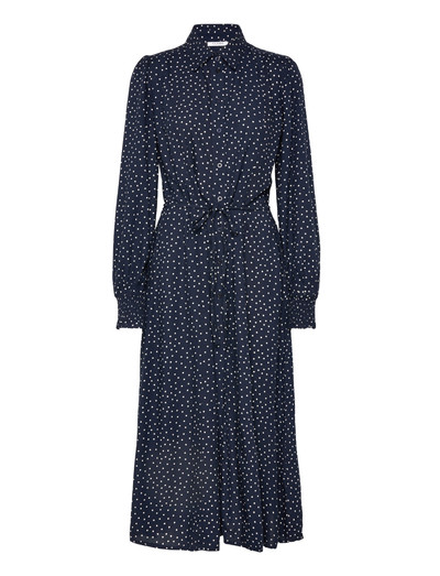 Dieses Midikleid im Hemdblusenstil mit durchgehender Knopfleiste und Bindeband in der Taille sorgt für eine schmeichelhafte Silhouette. Die langen Ärmel sind mit elastischen Bündchen versehen, die diesem vielseitigen Kleidungsstück eine subtile Note verleihen.