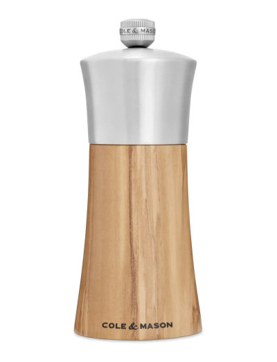 Saltmill made of olive wood and stainless steel with grinding mechanism that can easilya be adjusted from fine to coarse by turning the knob at the top of the mill. The sharp, corrosion-resistant ceramic grinder for salt comes witha lifetime guarantee.