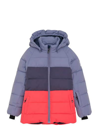 WasserfestWarm tailored quilted jacket with color block design in durable and partly recycled material. The material is breathable, windproof and waterproof, so your child can stay out in rain, snow and wind without getting cold and wet. Tested wear resistance of 30,000 rubs, water column pressure of 10,000 mm. and breathability of 3,000g. The jacket closes with quality zips at the front and at the outer pockets. The chin protector ensures that the zipper feels soft under the chin. The jacket has a removable hood. Reflective details on the back and on the sleeve for increased visibility. With inside name tag for easy identification. Coated with BIONIC FINISH® ECO. Certified acc. to GRS - Made with more than 50% Recycled Material