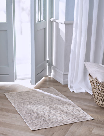 Beautiful and classic all-round rug in an exclusive beige tone. The Sands rug's neutral expression blends in elegantly with the rest of your décor. Non-slip mat with silicone – perfect as a bath mat, at doorways, as a carpet for the small entrance, or maybe on the boat or the terrace. STANDARD 100 by OEKO-TEX® certified.