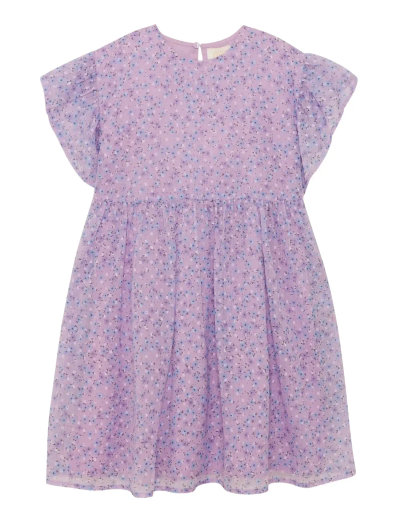 All-over-printet dress from Creamie made in chiffon. This dress has short sleeves and gathers at the waist and sleeves.
