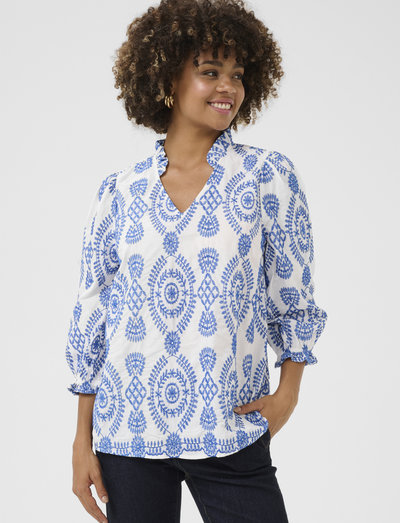 Diese Bluse mit lässiger Passform und Dreiviertelärmeln bietet einen entspannten und dennoch stilvollen Look. Die reguläre Länge macht sie zu einer vielseitigen Ergänzung für jede Garderobe, die sich leicht mit verschiedenen Unterteilen für unterschiedliche Anlässe kombinieren lässt.