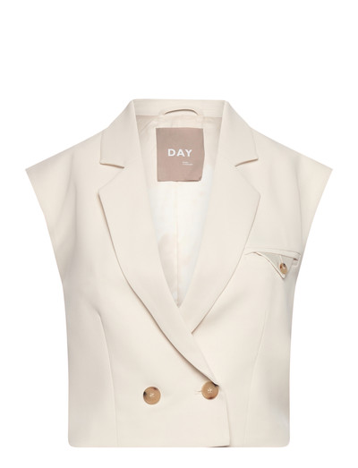Eine ärmellose Silhouette definiert dieser zweireihige Blazer und verleiht einem klassischen Design eine moderne Note. Die taillierte Passform und das scharfe Revers sorgen für einen eleganten Look, während die Pattentaschen vorne einen Hauch von Funktionalität verleihen.