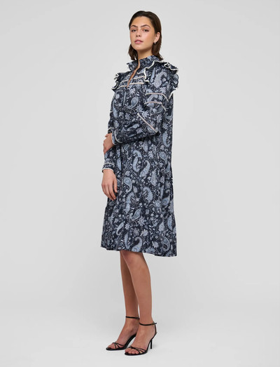 Mit ihrer raffinierten Silhouette bietet dieses Kleid einen Hauch von Eleganz. Rüschendetails an den Schultern sorgen für eine verspielte Note, während die langen Ärmel und der knielange Schnitt es zu einer vielseitigen Wahl für verschiedene Anlässe machen.
