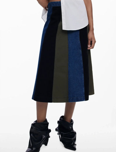 Dieser Webrock in A-Linie bietet eine schmeichelhafte Form. Das Design mit Einsätzen sorgt für optisches Interesse und einen Hauch von modernem Flair in Ihrer Garderobe.