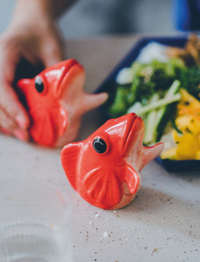 would you like a koi carp or two, but also thought that the price is a bit high or maybe you do not have an aquarium, then the solution is here. these two koi carps hold on to salt and pepper so you can spice up your food in style even if you don't eat fish. fishes for dishes are made of stoneware and are covered with a shiny glaze, so they will no doubt get a lot of attention perfect for fish, but also all other dishes.