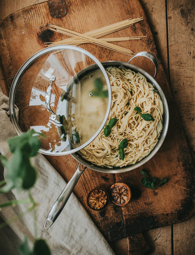 Sauté pan Ø30 cm with PFAS-free non-stick coating. 3-layer construction and glass lid for even heat and moisture retention.
