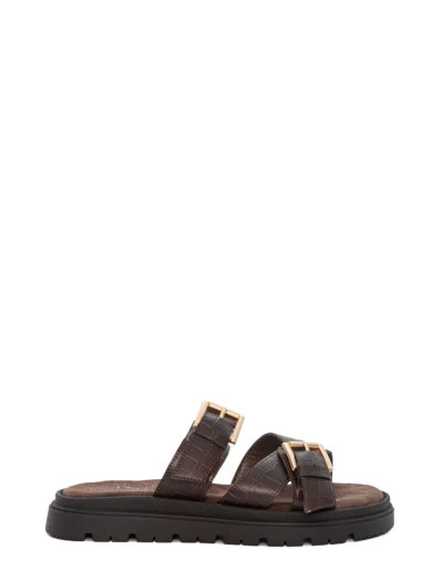 Diese Sandalen mit verstellbaren Riemen und einer robusten Laufsohle bieten sowohl Stil als auch Funktionalität. Das Design ist mit Schnallendetails versehen, die diesem bequemen Schuhwerk eine optisch interessante Note verleihen.