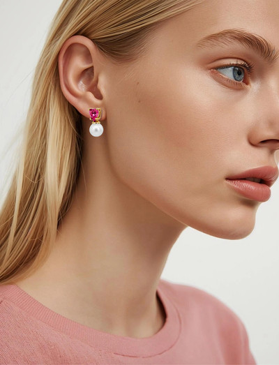 Diese Ohrstecker bieten einen Hauch von Eleganz und verfügen über einen herzförmigen Kristallanhänger, der über einer runden, künstlichen Perle angebracht ist. Der Körper besteht aus poliertem Messing, ergänzt durch Stifte aus Chirurgenstahl.
