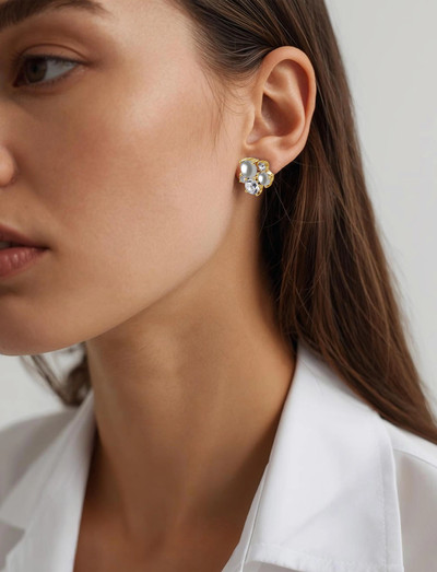 Diese Ohrstecker mit einem Cluster aus Kristallen und Imitationsperlen bieten einen Hauch von schlichter Eleganz. Diese vielseitigen Ohrringe können einzeln für einen minimalistischen Look oder zusammen mit anderen Ohrringen für einen persönlicheren Stil getragen werden. Die Ohrringe sind mit einem polierten Messingkörper und Stiften aus Chirurgenstahl gefertigt, was sowohl Stil als auch Komfort gewährleistet.