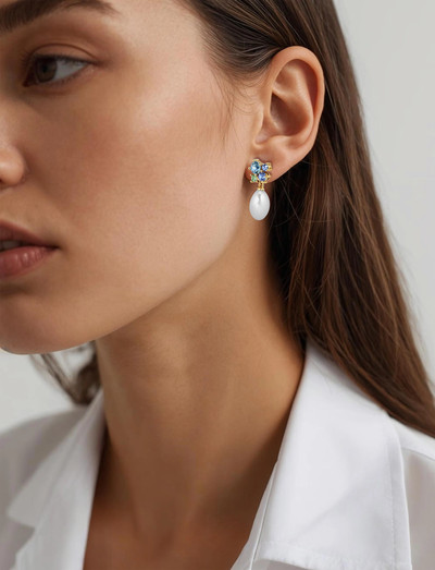 Barocke Imitationsperlen baumeln unter kristallbesetzten Oberteilen in diesen auffälligen Ohrringen. Das asymmetrische Muster verleiht einem klassischen Design einen Hauch von modernem Flair. Gefertigt mit einem polierten Messingkörper und Haken aus Chirurgenstahl bieten diese Ohrringe sowohl Stil als auch Komfort.